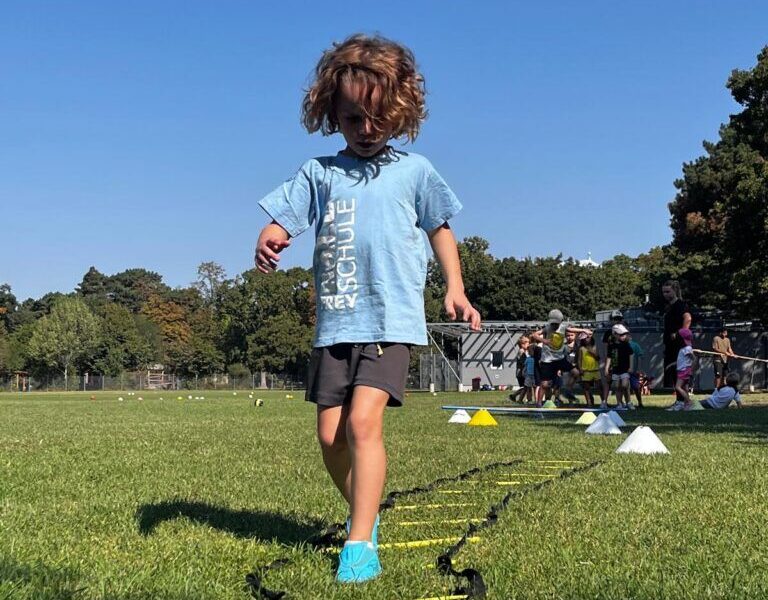 - Es gibt Einheiten, in denen unterschiedliche Sportarten ausprobiert werden, damit Kinder neue Bewegungsformen kennenlernen können.